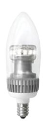 LED Dimmable Torpedo Candelabra Light Bulb - 3w - 120v - White – E12 Base - TCP Brand - Description: Color - White, Voltage - 120, Wattage - 3, Lamp Life (rated) - 25,000 Hours, U.L. Listed - Yes, Input line Frequency - 60HZ, Lumens - 100, Base – E12, Torpedo Candelabra 3500K Applications: Accent and decorative lighting, such as chandeliers, ceiling fans, indoor/outdoor fixtures. Ideal for applications with hard to reach areas, vibration and frequent starts